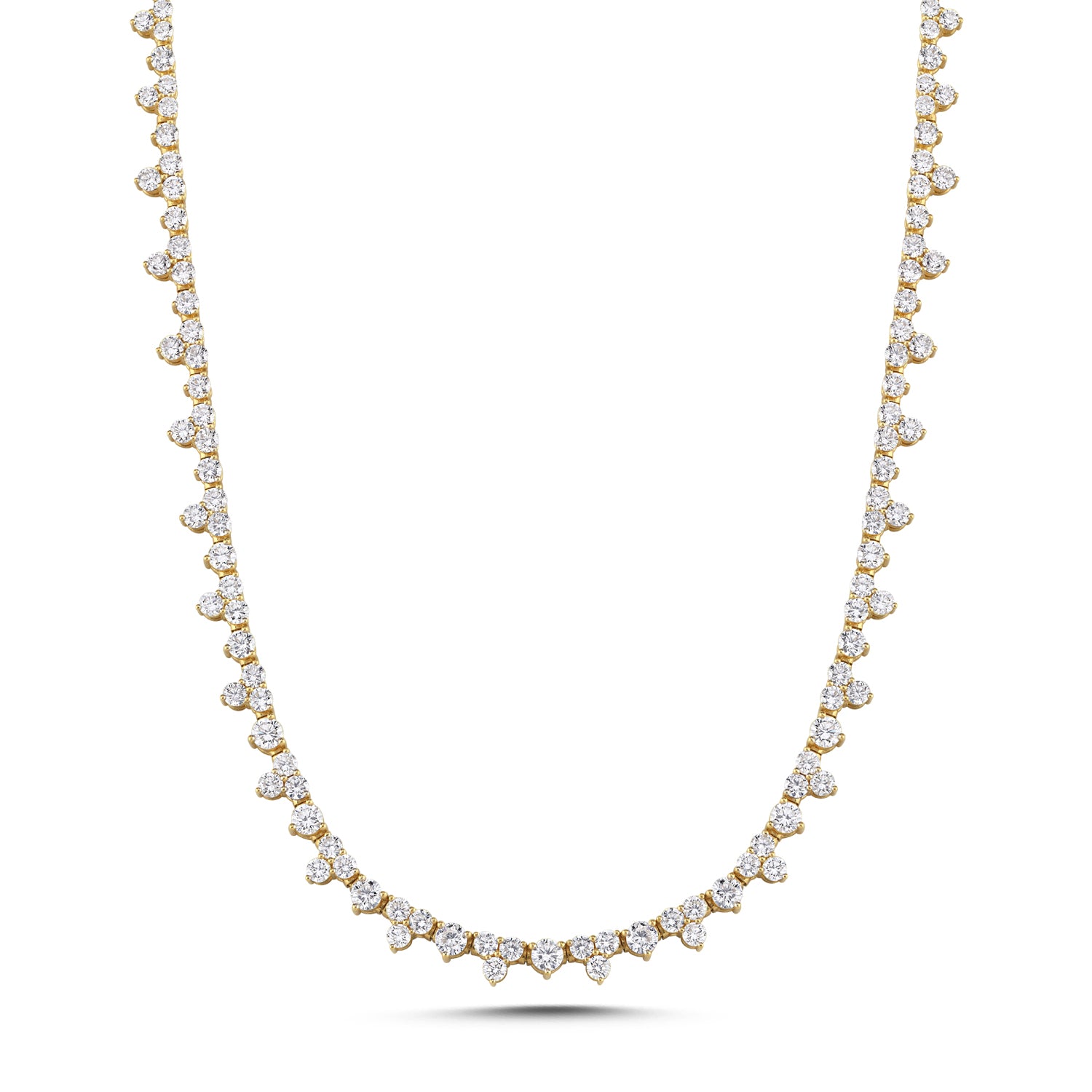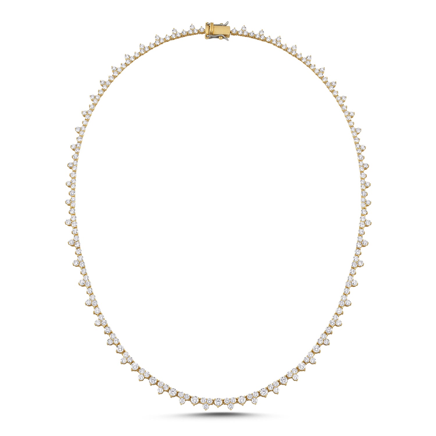 A diamond tennis necklace composed of graduated sunray diamond motifs crafted in 18k white gold with white-rhodium plating. Small-to-large diamond clusters form a radiant, sunbeam-inspired progression across the neckline. Each Ray of Light necklace is made to order, created individually for the client with atelier-level precision. Pricing is finalized upon request; should an order be placed, a member of the MÌREL team will personally contact you to confirm details before production begins.